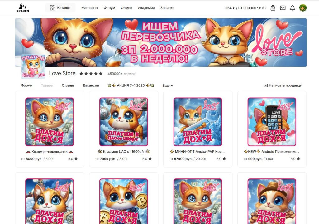 Kraken Tor — то же самое: Kraken, запущенный в сети The Onion Router (Tor). Это огромная экосистема с тысячами магазинов, где основной товар — вещества, документы, данные, услуги. Kraken держит топ-позиции в русскоязычном дарке благодаря: